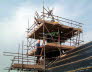 The roof vent with scaffolding, the finial removed from the top for repair.